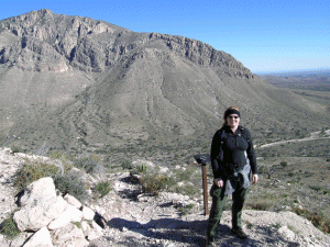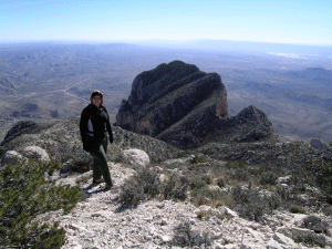 We decided it was time to tackle our home state highpoint. The Highpointers Club ranks Texas as 13th out of the 50 highpoints in difficulty (It's the 14th highest!) We flew into El Paso on Saturday evening, and drove to the Guadalupe National Park (or near it). We thought we would "just find a hotel" when we arrived. It is important to note, there is NOTHING between El Paso and Carlsbad, NM! Thus, we drove past Guadalupe National Park and stayed the night in Carlsbad. We started at the trailhead at 8am on Sunday. The very first part of the trail was a quick gain of about 1000 feet.